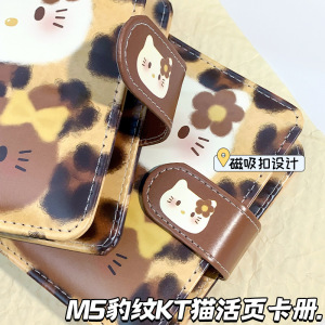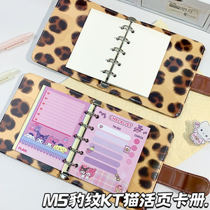 M5豹纹KT猫活页手账本ins笔记本三丽鸥凯蒂猫卡册可爱随身小本子