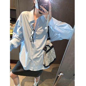 摩且 随性松弛感 小众通勤感单排扣翻领宽松休闲长袖衬衫 MQ0782