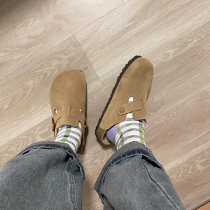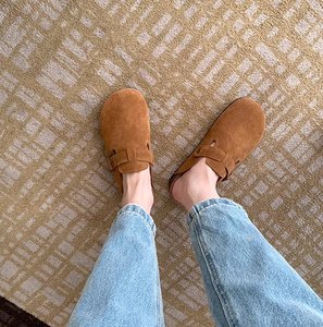 现货勃肯鞋女2025年新款厚底增高博肯包头半拖鞋春秋一脚蹬懒人鞋