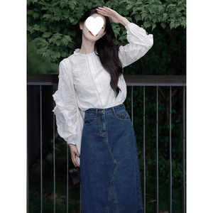 早秋穿搭套装2025小个子韩风森系穿搭白色衬衫牛仔半身裙套装