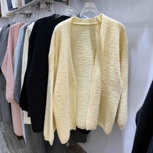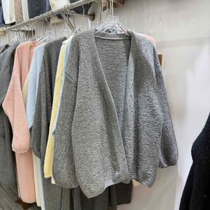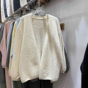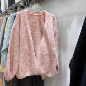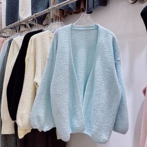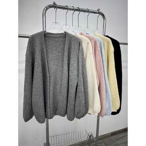 树皮纹工艺针织开衫女2025春秋新款韩版泡泡袖慵懒风毛衣宽松外套