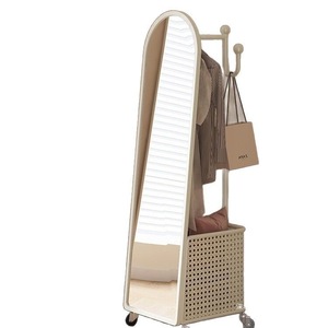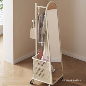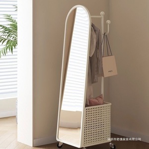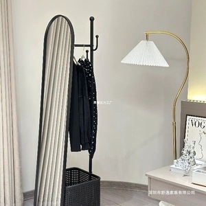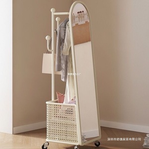 旋转穿衣镜挂衣架奶油风全身镜落地镜衣帽架一体镜子卧室试衣镜