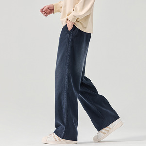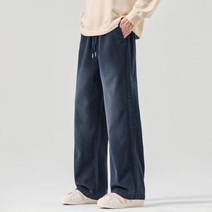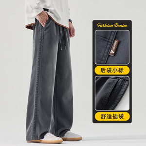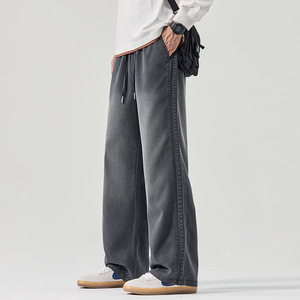 2025秋冬新款天丝莱赛尔休闲裤条纹直筒宽松舒适百搭牛仔裤子男潮