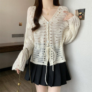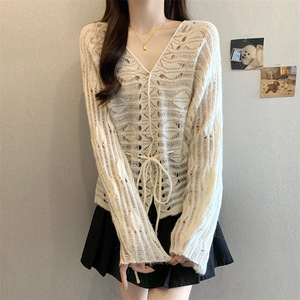 早秋新款设计感2025秋装新款女装镂空收腰显瘦针织衫女上衣A6602