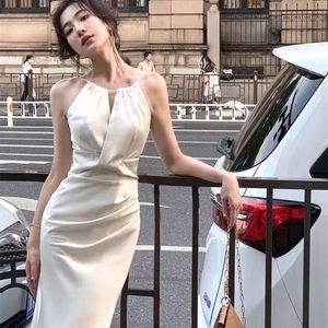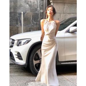 法式醋酸缎面连衣裙女夏气质高级感生日小礼裙白色领证高端晚礼服