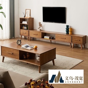 北欧现代简约全实木电视柜茶几组合小户型客厅卧室原木电视机柜