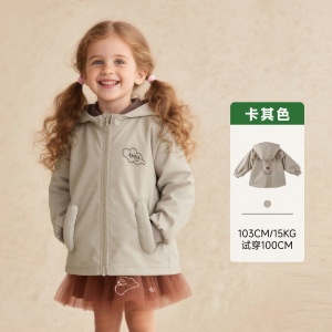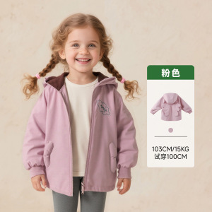 童贝童装2025年秋季新款男女童外套卡通连帽休闲防风开衫上衣