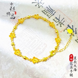 金店同款古法沙金星辰花海手链 送女友时尚高级感小众花朵手链女