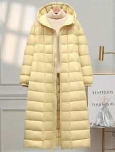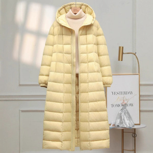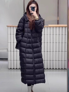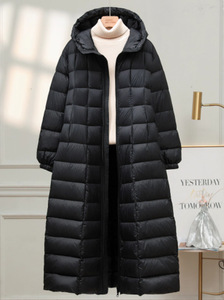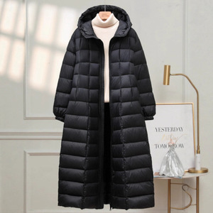 90白鸭绒长款连帽过膝羽绒服女士2025新款冬季抗寒保暖宽松外套