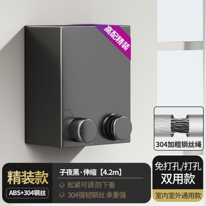 跨境阳台隐形伸缩晾衣绳钢丝免打孔酒店浴室晾衣架子晒衣晒被