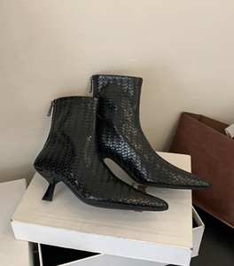 法式优雅时尚女短靴2025秋冬新款尖头细跟中跟短筒女靴编织高跟靴