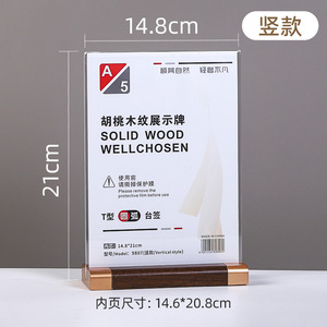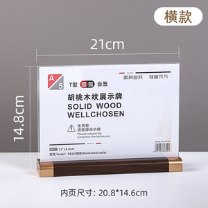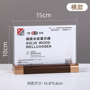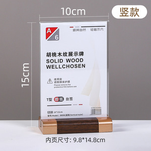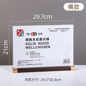 亚克力台卡A4餐厅桌牌胡桃木价格签餐牌广告展示牌T型立牌展示架