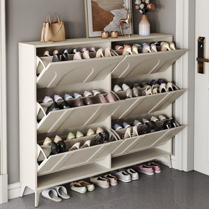 超薄极窄鞋柜玄关柜美式家用门口楼道外入户进门翻斗鞋柜黑色门外
