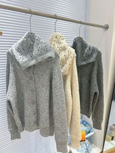 25秋冬宽松慵懒风外搭开衫毛衣上衣镂空连帽长袖软糯针织衫外套女