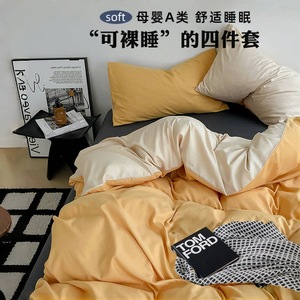裸睡A类纯棉四件套床上用品爆款ins全水洗棉床单被套罩宿舍三件套