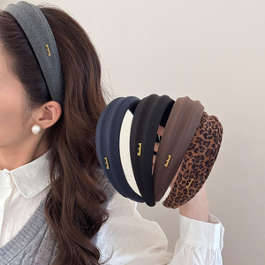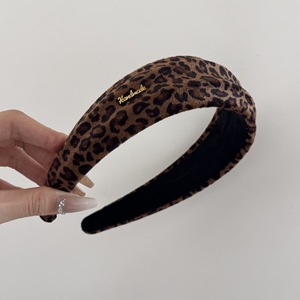 早秋新款韩系复古字母豹纹宽边绒面发箍女生高颅顶高级感洋气时尚