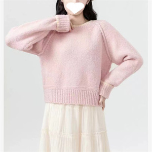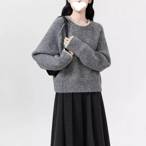 圆领撞色套头针织衫女2025秋冬新款韩版设计感长袖毛衣上衣