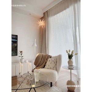 极简大理石软装设计师样板房卧室北欧沙发边角几圆形边几铁艺