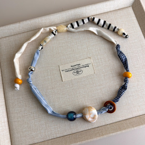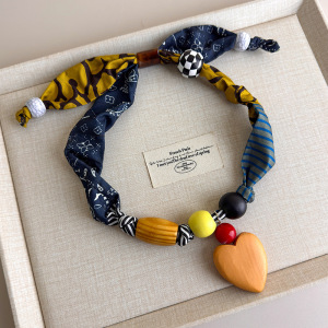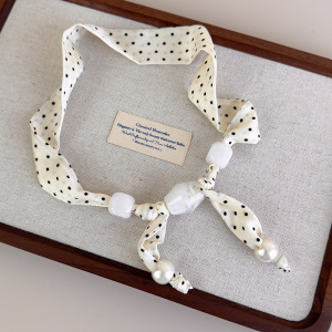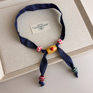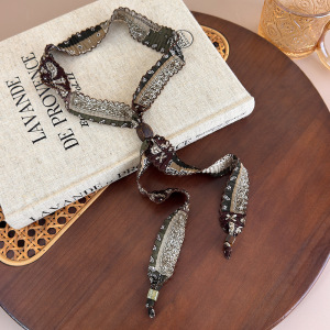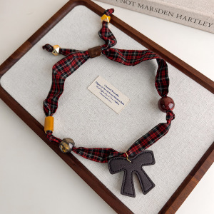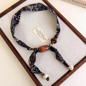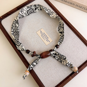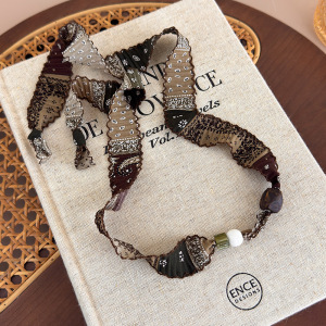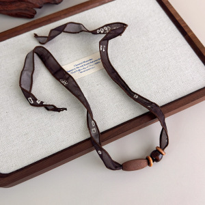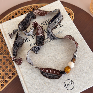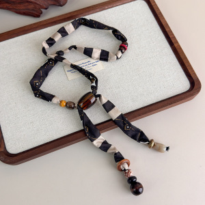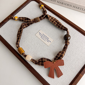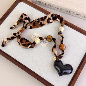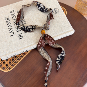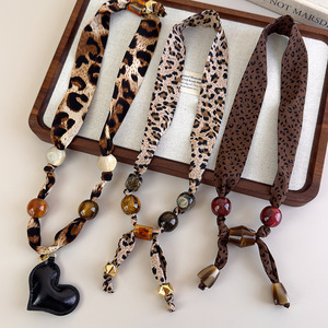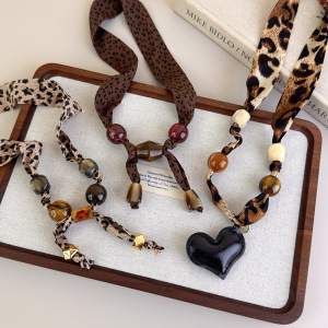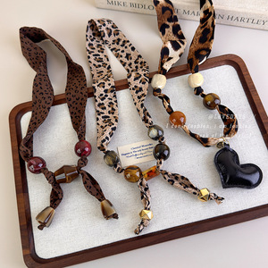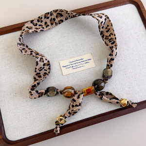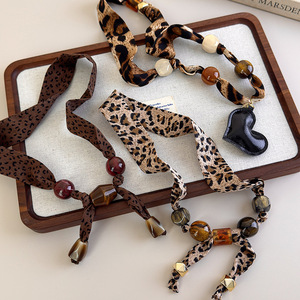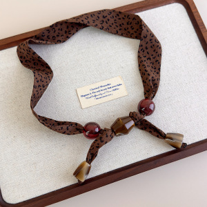 美拉德咖色豹纹串珠丝巾项链女复古小众设计感可调节毛衣链配饰品