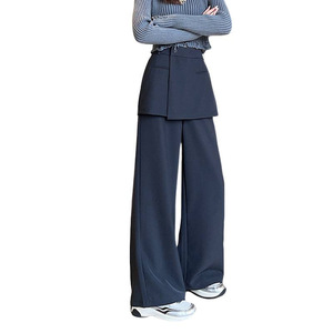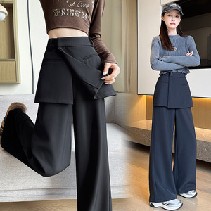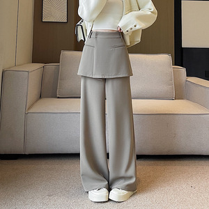 好质量美式假两件西装裤子女春季设计感叠穿裙裤休闲裤拖地裤