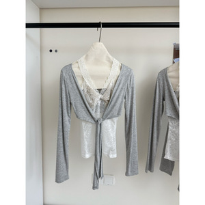 熹凤梨''失落玫瑰‘’蕾丝假两件针织上衣女2025秋季新款