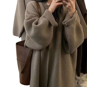 秋冬纯色慵懒过膝宽松大衣大版外套高级显瘦针织开衫毛衣女中长款