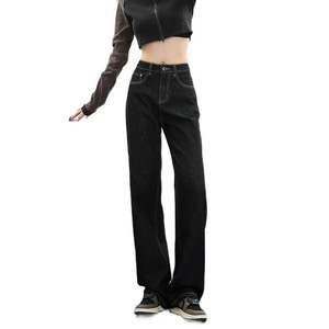 2025新款百搭秋季筒染工艺牛仔蓝超手感柔软阔腿拖地牛仔裤女潮