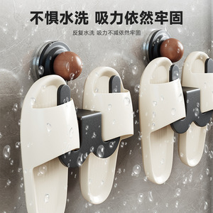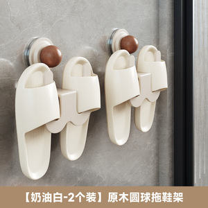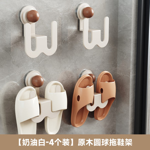 胡桃木浴室拖鞋架壁挂式免打孔吸盘卫生间厕所鞋子沥水挂钩收纳架