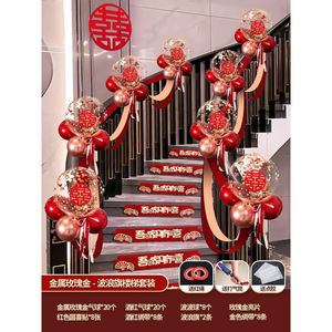 楼梯扶手装饰结婚女方婚礼气球拉花套装男方婚房布置婚庆用品卧室