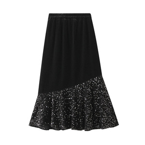 鱼尾裙2025秋冬丝绒拼接亮片半身裙修身显瘦黑色裙子长裙女J530
