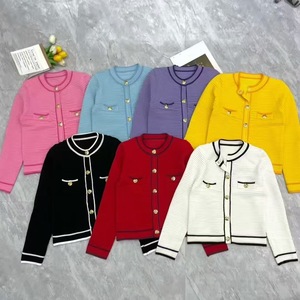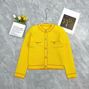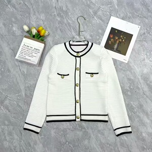 2025秋冬新款法式小香风圆领金属扣条纹气质时尚短款上衣外套开衫