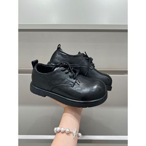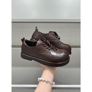 单鞋厚底圆头英伦风新款牛津真皮黑色乐福鞋德比2024系带小皮鞋女