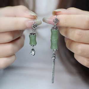 复古文艺雅竹耳环女中国风竹节流苏不对称耳坠显瘦中式古典耳饰