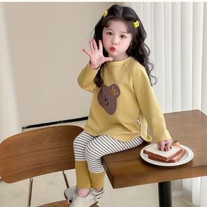 女小童春秋款卡通长袖T恤两件套洋气2025新款女宝宝条纹打底裤棉
