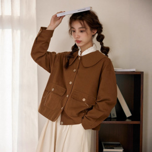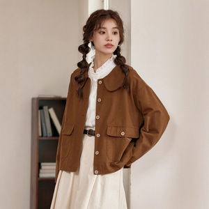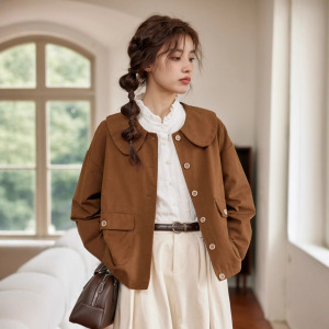 日系文艺复古娃娃领绣花长袖外套女2025秋季新款单排扣开衫上衣