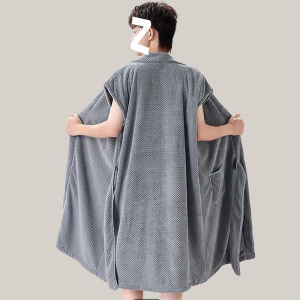 浴巾式浴袍男士家用洗澡睡袍四季通用可穿可裹吸水长款浴衣成人