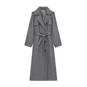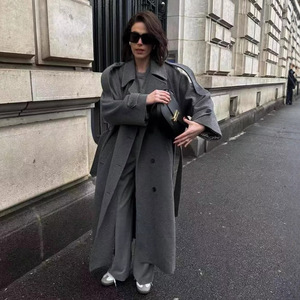 ZA速卖通爆款跨境欧美风女装复古高级毛呢腰带大衣外套