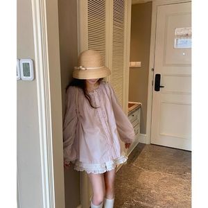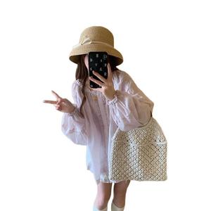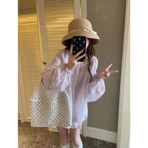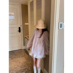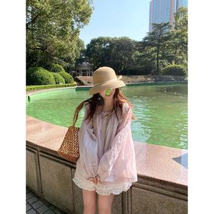 粉紫色设计感蕾丝长袖防晒衬衫上衣女夏季纯欲绝美宽松百搭小衫