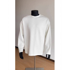 白色重磅精梳纯棉纯色T恤男长袖内搭圆领卫衣春秋基础款打底衫