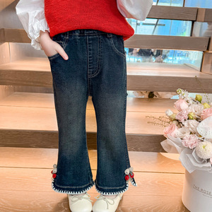 女童秋季牛仔微喇裤2025新款早秋洋气儿童韩版休闲女宝宝百搭裤子