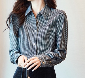 2025秋季新款气质时尚百搭千鸟格衬衫2025秋季翻领衬衫女装上衣