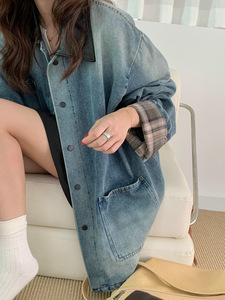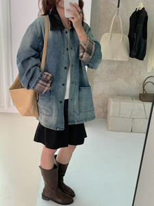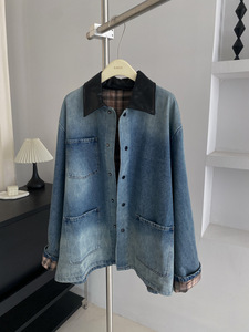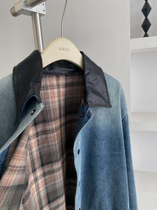 GAGD 法式复古做旧牛仔外套25秋季巴恩风撞色拼接短中长夹克上衣