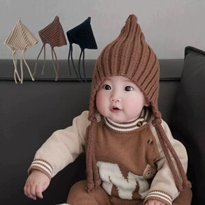 秋冬男女宝宝个性粗针毛线精灵帽子儿童保暖护耳尖尖个性针织帽潮