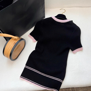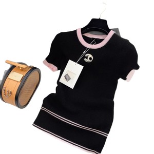 2025早秋新款南油cha高级小香风减龄别致撞色圆领字母短袖针织衫