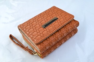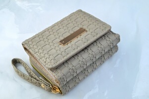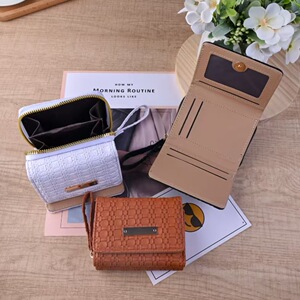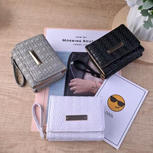 跨境长款格纹三折钱包零钱包铰包压花设计大钞夹简约风格时尚钱包