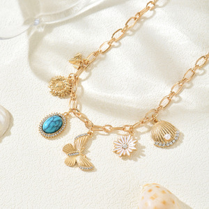 跨境个性项链批发清新自然蜜蜂蝴蝶吊坠小众金属向日葵花朵项饰女