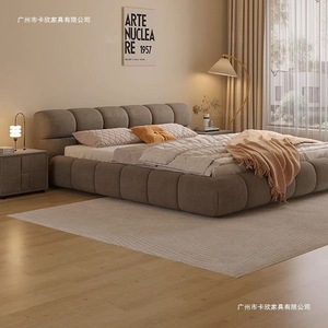 网红泡芙床皮床双人床奶油系主卧大床奶油风床轻奢现代简约泡芙床