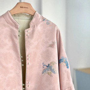 新中式外套粉色高级感国风双面穿刺绣上衣女春秋盘扣年轻改良唐装