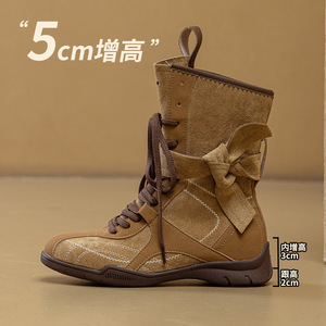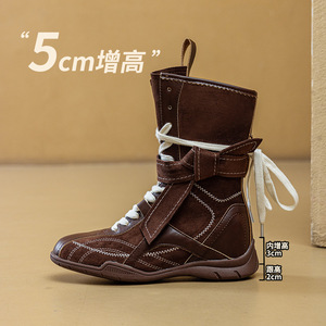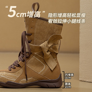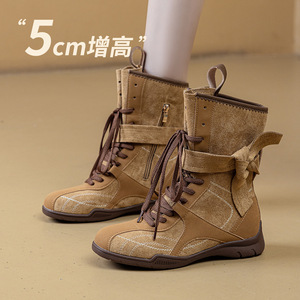 复古拳击靴5cm内增高绒面美拉德时装中筒靴女运动风户外德训靴秋