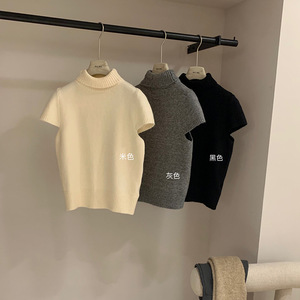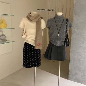 WGWE3083慵懒气质宽松针织衫女小个子温柔早春穿搭短袖上衣